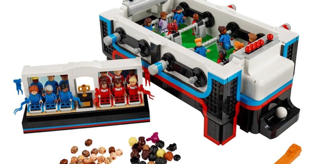 Futbolín / Futbolín siempre es un buen momento. Con el último set de LEGO Ideas, la diversión del futbolín se extiende al proceso de construcción (si alguna vez armaste un futbolín de tamaño completo, sabrás que no tiene nada de divertido). Inspirado en un diseño del fanático de LEGO de 16 años Donát Fehérvári, el juego es completamente jugable, aunque a pequeña escala, lo que significa que solo hay cinco jugadores en cada lado. Sin embargo, obtendrás un complemento completo de 22 jugadores en miniatura con 44 cabezas únicas y 43 elementos de peinado que puedes usar para personalizar tu equipo. También puedes transformar a estos jugadores extra en fanáticos gracias a la tribuna incluida.