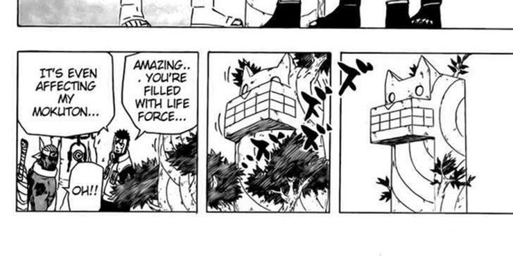 A pesar de que sucedió varias veces, la razón de la efectividad del estilo de madera contra las bestias con cola nunca ha estado del todo clara. Pero una relectura cuidadosa de naruto El capítulo 505 revela la respuesta. Este capítulo tiene lugar después de que Naruto conoce a Kushina y obtiene el Modo Chakra de Nueve Colas. Los pilares de madera que Yamato creó como una red de seguridad alrededor de Naruto brotan retoños que rápidamente se convierten en pequeños árboles, y se explica que esto se debe al nuevo encendido de Naruto que irradia energía de fuerza vital.