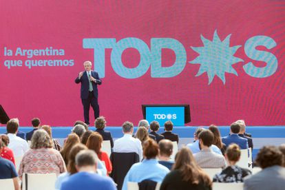Los sondeos marcan un retroceso del Frente de Todos respecto de la última elección, en 2019, cuando Alberto Fernández obtuvo en la primera vuelta con el 47% de los votos, contra el 41% que sumó Mauricio Macri, que iba por la reelección. Juana Vázquez, jubilada, asegura que se mantendrá fiel al peronismo: “La pandemia fue un desastre no solo acá, en todo el mundo, pero nosotros teníamos la crisis y la deuda que había dejado Macri. Este año vamos a salir”, dice, optimista, en el acto de cierre de campaña de la coalición oficialista.
