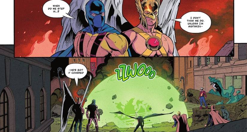 Un monólogo posterior insinúa que Alan Scott es un Linterna mucho más poderoso de lo que cualquiera hubiera esperado. restableciendo por completo la forma en que los fanáticos entienden las clasificaciones de poder de los muchos Linternas Verdes de DC con base en la Tierra.