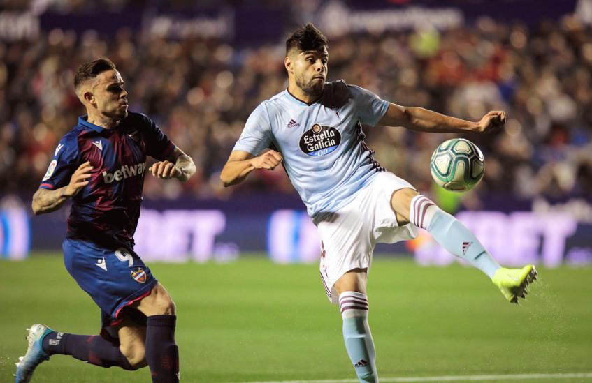 El Celta empezó más entonado el encuentro, rocoso en el centro del campo y rápido arriba para generar espacios ante un Levante aún con legañas. El cuadro vigués avisó con una llegada de Rafinha, pero fue en un saque de esquina cuando empezó a marcar diferencias. Iago Aspas aprovechó la peinada de Araújo para adelantar al Celta rematando desde el segundo palo.