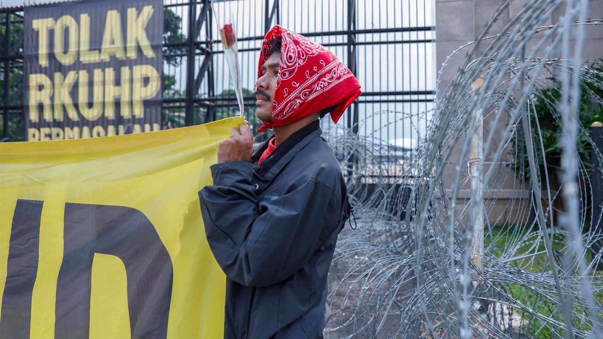 “Rechaza la ratificación de la reforma del código penal”, reza una de las pancartas desplegadas hoy frente a las puertas del Parlamento de Indonesia en Jakarta, donde está previsto que mañana una mayoría de partidos ratifique la reforma más extensa del código penal desde la independencia de Indonesia de Holanda en 1945.