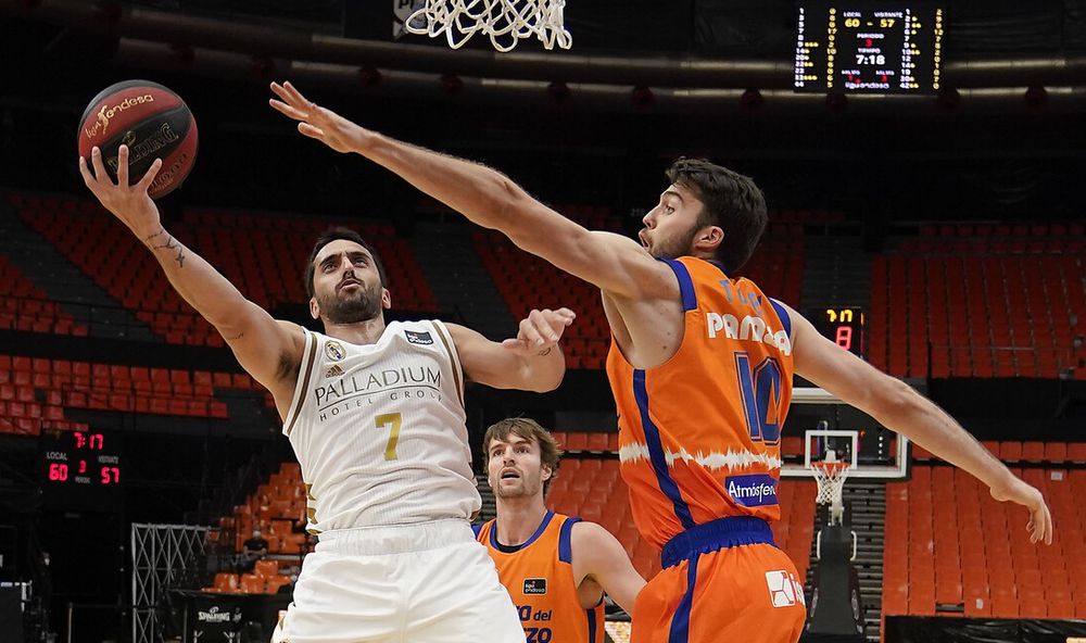 A los cinco días de volver a competir después de 101 de interrupción, el Real Madrid afrontó ante el Valencia su primera final de la nueva normalidad para mantener las opciones de llegar a las semifinales de Liga. Salvaron el match-ball los de Laso (95-90) abrazados a la determinación febril de Facundo Campazzo. Tras un regreso destemplado, el Facu recuperó su mejor versión en el momento clave. En La Fonteta ofreció un recital con 29 puntos, 11 asistencias, tres robos, seis faltas recibidas y 42 de valoración en 37 minutos en pista —la mejor valoración de un jugador del Madrid desde los 45 de Arvydas Sabonis en 1995—. El base argentino rearmó a su equipo y resolvió un duelo cargado de bravura y detalles, en el que Tavares y, sobre todo, Deck resultaron también decisivos para atajar el orgullo de Abalde (17 puntos), Dubljevic, Marinkovic y compañía. “Mostramos nuestra mejor cara, pero esto sigue y nos quedan dos finales más. Tenemos que ser exigentes y mejorar. Estuvimos tres meses encerrados en casa y es normal que vayamos de menos a más”, resumió Campazzo tras la batalla. “Son ganadores y saben lo que hacer para ganar. Nosotros estuvimos cerca, pero nos faltaron pequeñas cosas”, completó Ponsarnau con resignación. La victoria de los blancos, sumada a la del Gran Canaria sobre el Burgos en la prórroga, generó un cuádruple empate en un grupo B apasionante, con Valencia, Real Madrid, Burgos y el propio Gran Canaria igualados a dos triunfos y una derrota.