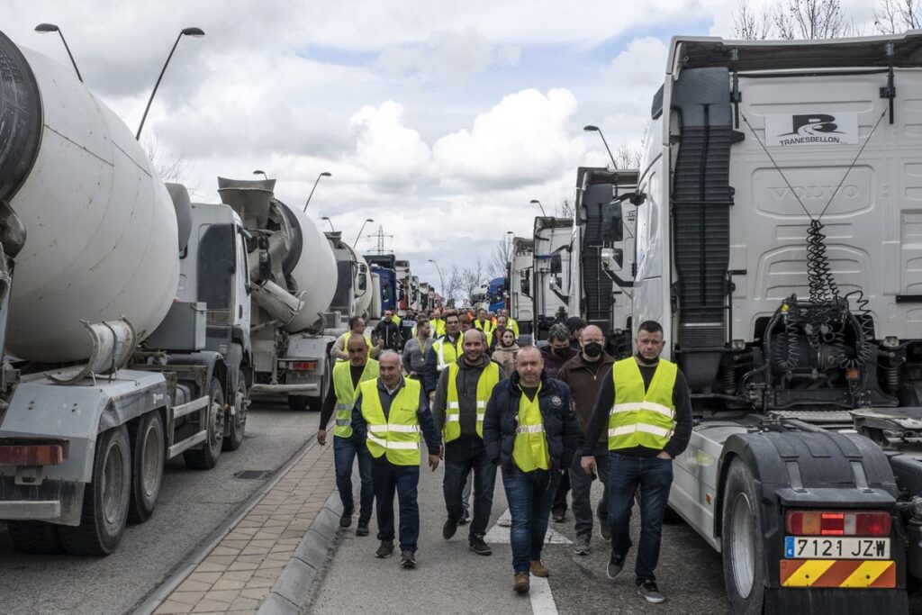 Protesta de transportistas en el polígono Los Gavilanes de Getafe, Madrid, el pasado 21 de marzo.DAVID EXPOSITO