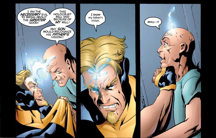 Un Profesor X malvado está en la misma liga que la versión malvada del Superman de DC Comics, versiones inmorales de personajes que simbolizan la benevolencia e inspiran esperanza. Aunque la imagen de Xavier se ha visto empañada por malas decisiones y errores a lo largo del tiempo, palidecen en comparación con esta variante de Charles Xavier. Aquí, Charles es un terrorista mutante cuyo compromiso con la superioridad sobrehumana se ve reforzado por las atrocidades experimentadas por su largo tiempo encarcelado. Su ataque a Phoenix es su forma de estirar sus poderes mentales después de ser liberado, descargando su ira en personas inocentes que posiblemente apoyaron la tolerancia cero del gobierno. Al igual que el malvado Superman en historias como Injusticia, su rabia por lo que ha soportado lo lleva a desatar sus vastos poderes sobre personas inocentes. En las historias de DC donde los héroes luchan contra un Superman que se volvió malvado, no solo enfrentan una amenaza física, sino que también sufren el costo emocional de ver a un gran héroe cometiendo atrocidades. Mimic experimenta algo similar cuando el malvado Profesor X se burla de él, afirmando ser un cruzado que acaba con un holocausto de Homo superior en lugar de un “figura paterna lisiada.”