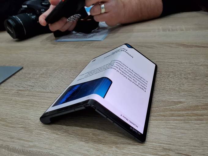 Ayer nos dio una visión más cercana del Samsung Galaxy Fold. Por supuesto, todavía había un plato de vidrio, una cuerda de seguridad y unos pocos pies entre nosotros y el dispositivo. Afortunadamente, Huawei estaba un poco más dispuesto a darnos acceso a su propio plegable, el Mate X en una reunión a puertas cerradas esta mañana.