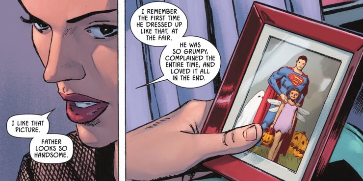 Reflexionando sobre el pasado mientras Helena Wayne protege a su madre de la justicia y el comisionado Dick Grayson en el nuevo Batman/Gatúbela #11, se ve a la madre y la hija admirando una vieja foto familiar de cuando Bruce llevó a la joven Helena a pedir dulces. Hilarantemente, el Caballero de la Noche original sorprendentemente lleva un disfraz de Superman, parece que su familia lo había convencido a pesar de sus protestas. Sin embargo, la nueva Batwoman confirma que a Batman en secreto le encantaba usar el disfraz y crear recuerdos con su hija.