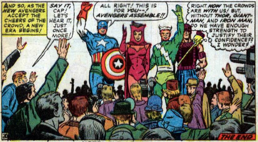 La membresía de los Vengadores ha estado cambiando desde Los vengadores #2 de Jack Kirby, Stan Lee, Paul Reinman, Stan Goldberg y Artie Simek, cuando Hulk dejó el equipo después de su primera aventura. La siguiente gran sacudida se produjo en Los vengadores # 16 de Kirby, Lee, Dick Ayers, Carl Hubbell y Simek, en el que todo el equipo (aparte del Capi) se ausenta después de una desgarradora batalla con los Maestros del Mal del Barón Zemo.