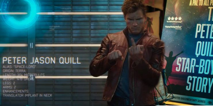 Cuando Peter anuncia por primera vez que su nombre es Star-Lord de una manera muy dramática a Korath (Djimon Hounsou), Korath responde “¿Quién?” en confusion. Se convierte en el comienzo de la broma corriente sobre la incapacidad de Peter para crear un nombre por sí mismo. Continúa en la película cuando los Guardianes son arrestados y detenidos por Nova Corps de MCU. A medida que cada Guardián se identifica y aparece en el sistema, se puede ver que, bajo “alias”, se hace referencia a Peter como “Space-Lord”. Claramente, Peter no es una amenaza suficiente para que Nova Corps le preste mucha atención, lo que demuestra que no tiene la reputación de un forajido infame que tanto desea.