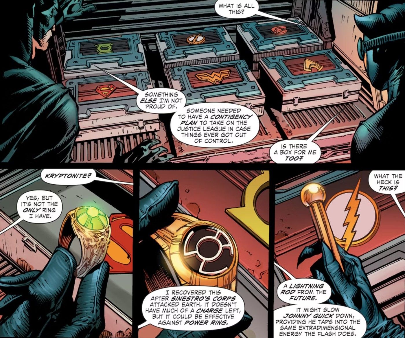 hombre murciélago siempre tiene un plan para derrotar a su oponente, pero, debido a que tiene tantas armas y artefactos diferentes a su disposición, a veces se encuentra con un plan de contingencia que funciona en un Liga de la Justicia héroe para el que nunca fue diseñado. Este fue el caso cuando Lex Luthor descubrió un plan para acabar con Flash y muy fácilmente podría acabar con Shazam también.