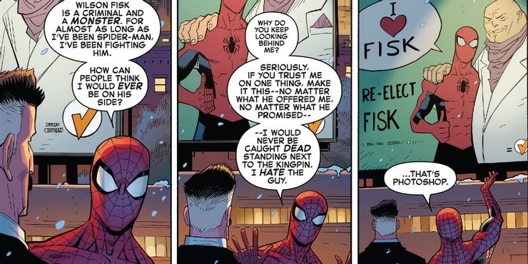 Wilson Fisk, también conocido como Kingpin, es uno de los señores del crimen más poderosos y peligrosos de Marvel Comics, generalmente se muestra como el señor supremo de todo el crimen en Nueva York. Si bien puede ser mejor conocido como el archirrival de Daredevil, conocido de día como Matt Murdock, originalmente fue presentado como un villano de Spider-Man en El Sorprendente Hombre Araña #50. Desde entonces, se ha convertido en un adversario recurrente en los cómics de Spider-Man y Daredevil, así como de The Punisher y Echo. Esto es lo que llevó a Kingpin a ser el principal antagonista de Miles Morales en Spider-Man: En el Spider-Versey para Echo en Ojo de halcón.