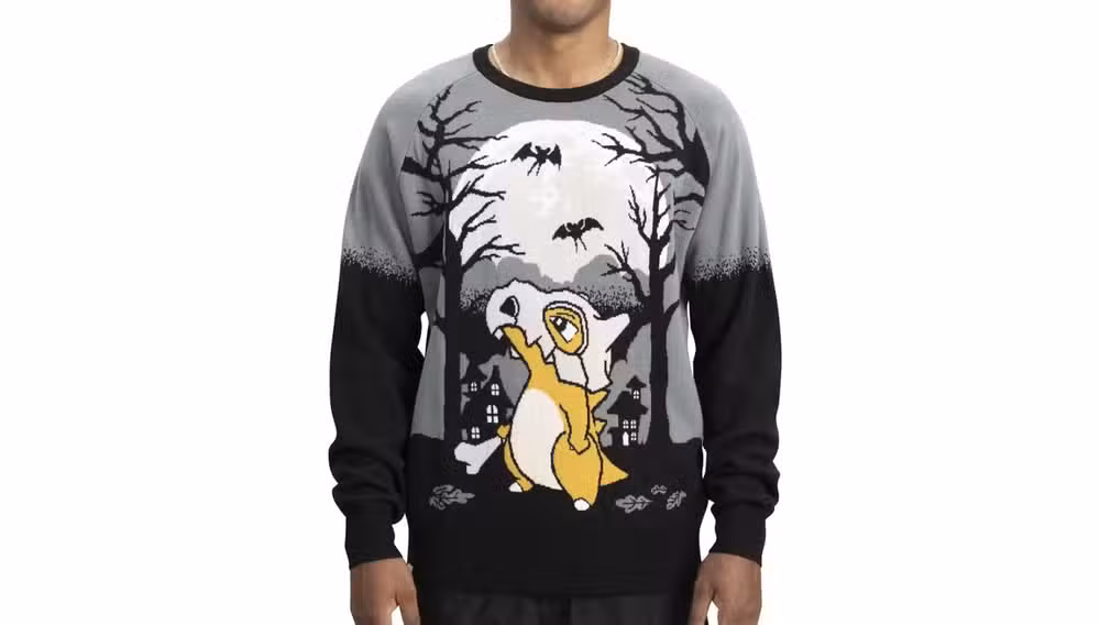 Manténgase abrigado este Halloween con un suéter de cuello redondo Cubone