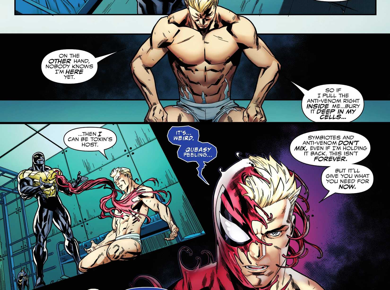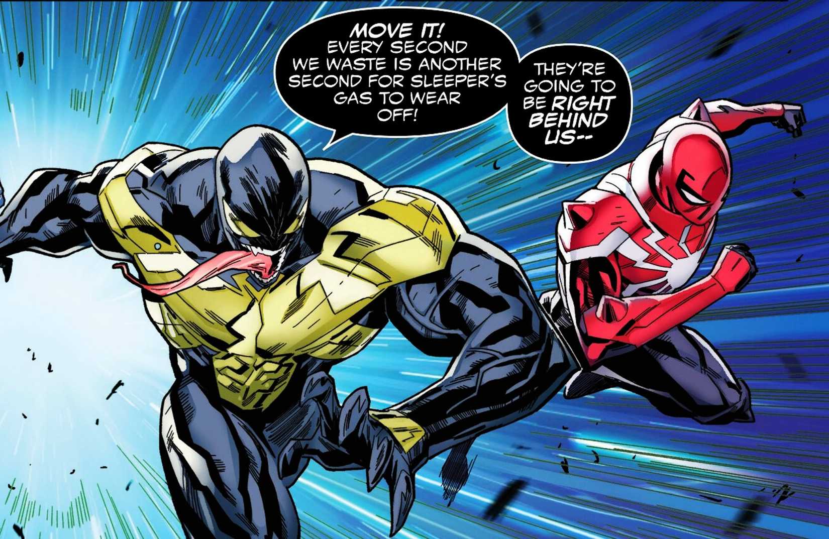 Sometiendo su propia naturaleza anti-venideo latente (instantáneamente letal a cualquier simbionte vivo), Flash demuestra su experiencia y moralidad, fusionándose con toxinas para ayudarlo a escapar. Y en el proceso, debutar lo que es instantáneamente uno de los mejores trajes de araña/veneno/simbiote nuevos en la memoria reciente.