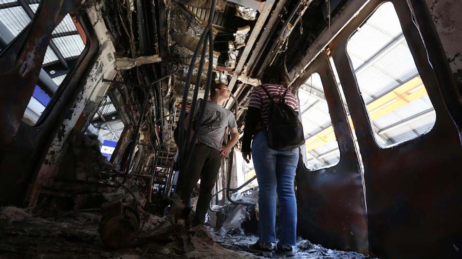 Al otro lado de la ciudad, la estación de Elisa Correa ardió hasta tres veces durante el fin de semana con tren incluido, el mismo cuyo amasijo de metales retorcidos está al alcance de cualquier curioso que quiera recorrer esa escena de destrucción adornada con grafitis contra Piñera y los militares.