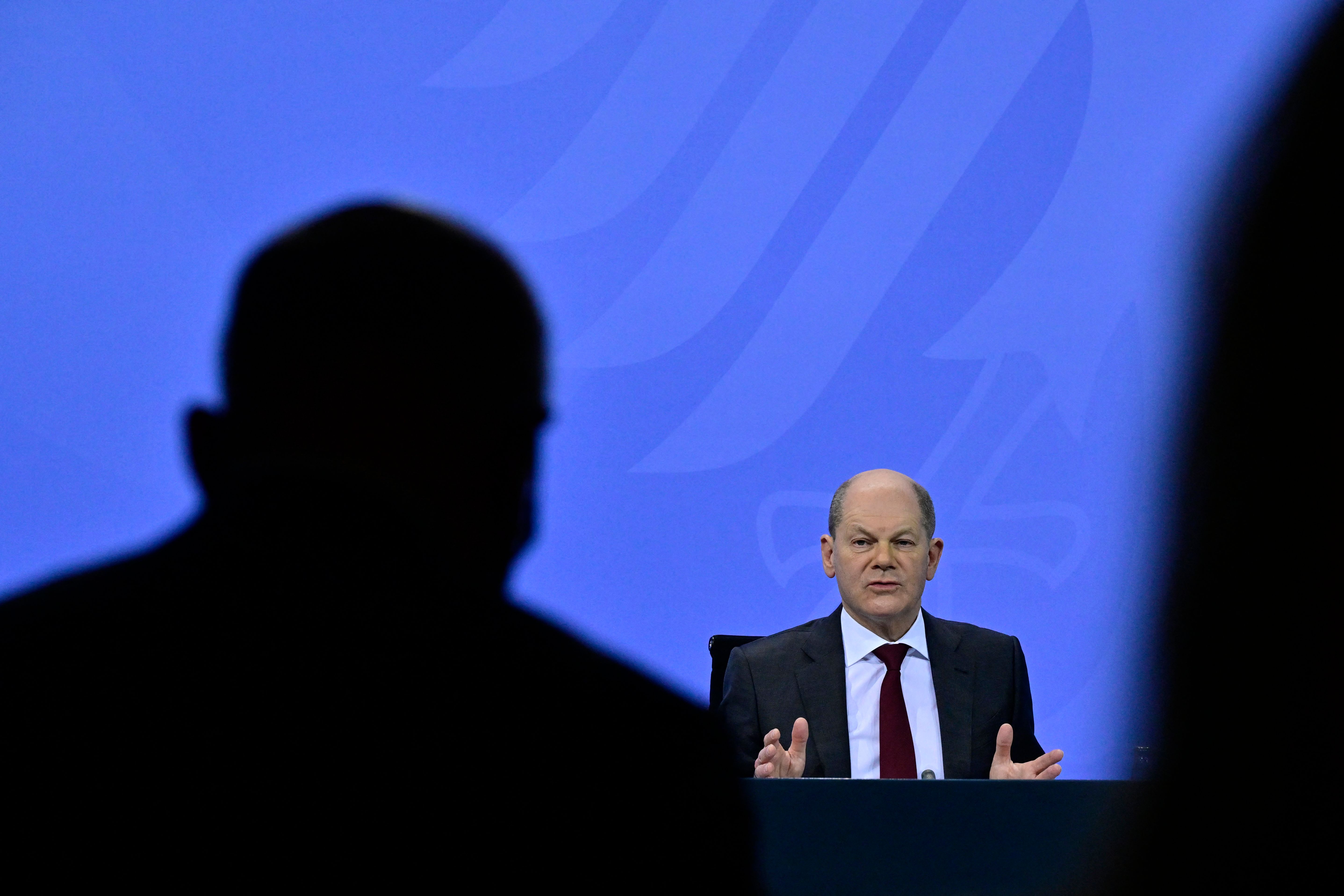 El canciller alemán, Olaf Scholz, durante la rueda de prensa tras la reunión con los líderes regionales, este viernes en Berlín.JOHN MACDOUGALL (AFP)