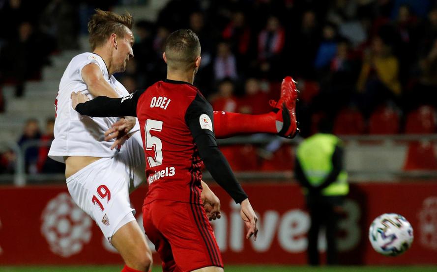 El Mirandés saltó al campo decido a complicarle la vida a un Sevilla arrollado. La asfixiante presión de los de Iraola surgió efecto, permitiendo a los rojillos arrinconar a su rival en su campo.