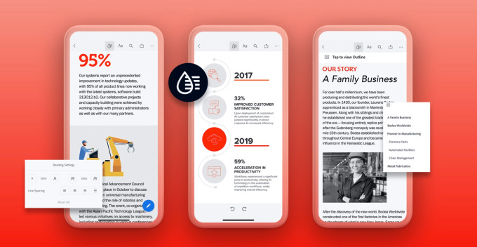 Después de unos meses de pruebas silenciosas, Liquid Mode se está implementando públicamente en la aplicación Acrobat Reader de Adobe para iOS y Android. hoy, con planes de llevarlo a los escritorios más adelante. El director de tecnología de Adobe, Abhay Parasnis, también me dice que han estado trabajando en una API que permitirá que una funcionalidad similar se implemente en aplicaciones que no sean de Adobe en el futuro.