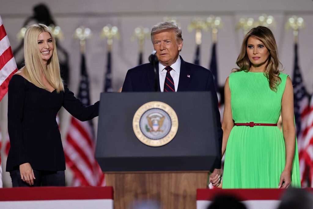 La puesta en escena es la siguiente. Mientras la primera dama posa sonriente con un elegante vestido verde plisado junto a su marido, su hijastra Ivanka se desplaza para subir junto a ellos, y si en primera estancia Melania tiene una gran sonrisa e inclina la cabeza a modo de saludo hacia la mayor de las hijas de Donald Trump, lo que vino a continuación se ha hecho viral.
