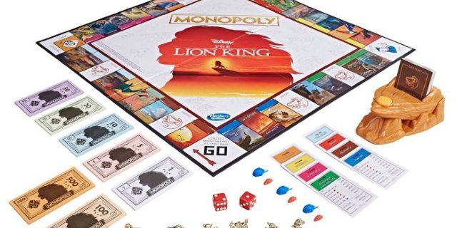 - DISNEY THE LION KING THEMED GAMEBOARD: esta edición del juego Monopoly presenta un tablero de juego con ilustraciones inspiradas en la película The Lion King; Los jugadores pueden imaginar el viaje de Simba para convertirse en rey.