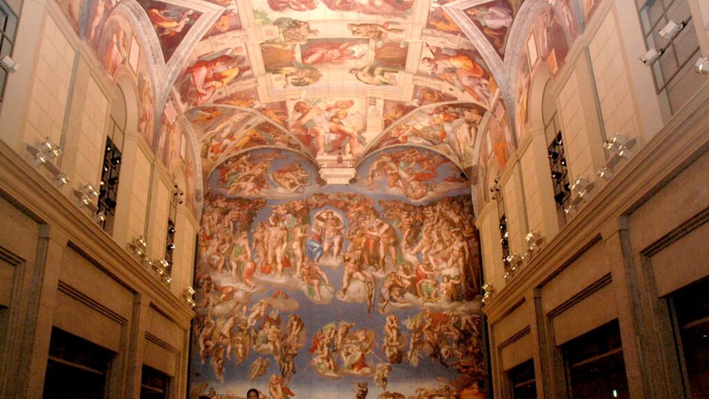 • En primer lugar, se reúnen piezas de la Antigüedad y la Edad Media, así como una reproducción a tamaño natural de la Capilla Sixtina .