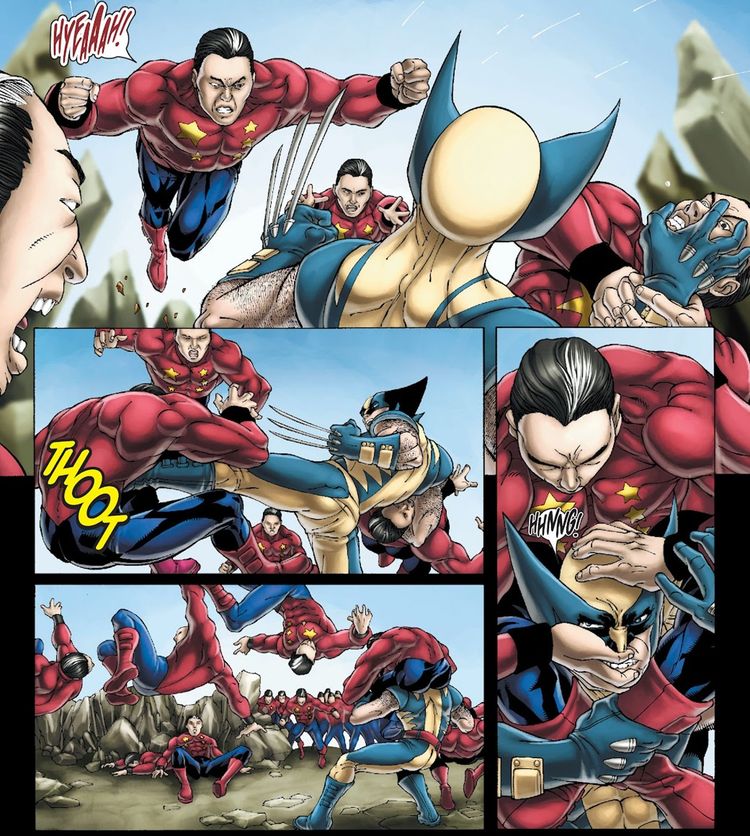 Collective Man puede luchar contra los X-Men hasta que Iceman y Polaris se esfuerzan al máximo. Las habilidades de lucha y replicación de los hermanos Tao-Yu no solo les permiten abrumar a sus compañeros mutantes, sino también su fusión definitiva, que se asemeja a algo sacado directamente de John Carpenter. La cosa (1982)le da dolor de cabeza incluso al Juggernaut. En última instancia, se necesita un Iceman igualmente engrandecido para derrotar a este Megazord mutante, e incluso entonces, su enorme tamaño es suficiente para atrapar a Cain Marko.