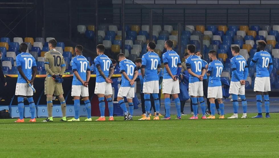 Tras un calentamiento en el que se pudo escuchar “Live is Life’, de Opus, los once futbolistas del Nápoles homenajearon a Maradona luciendo una camiseta con su nombre y el mítico ‘10’ que lució y que está retirado en su honor.