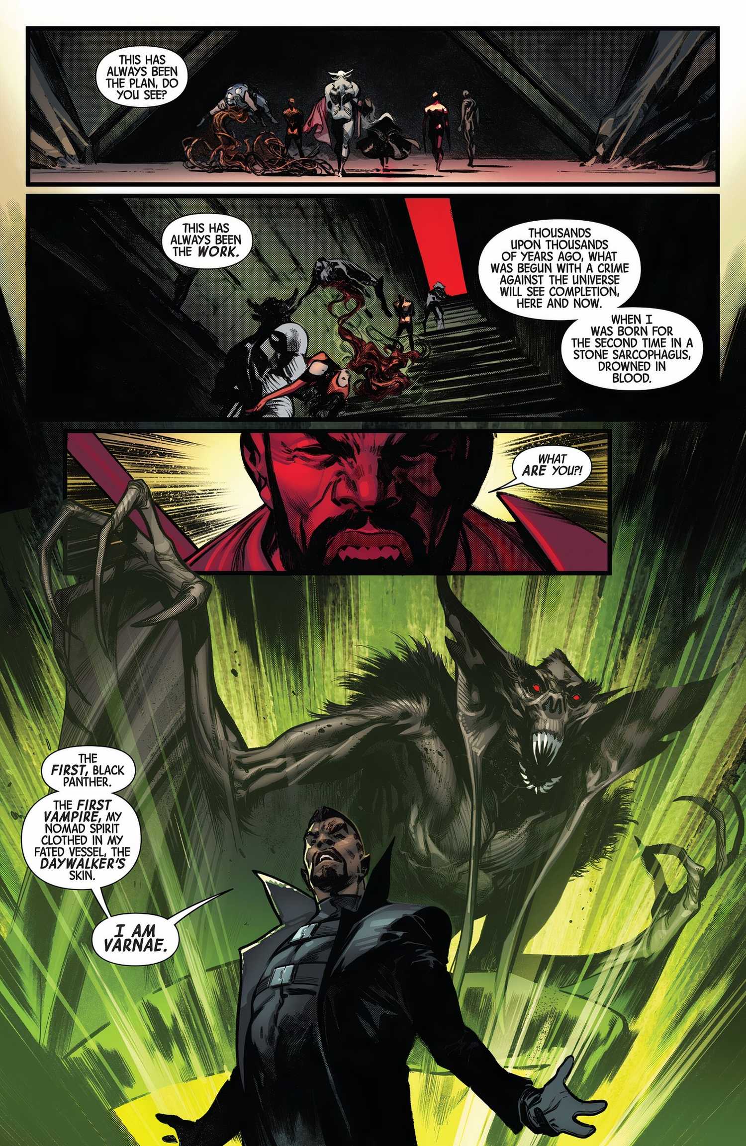 Caza de sangre El número 4 está escrito por Jed MacKay y dibujado por Pepe Larraz. Blade aparentemente le dio la espalda a sus antiguos amigos al liderar a los vampiros en su cruzada contra la Tierra. Sin embargo, Caza de sangre El número 4 revela que, como era de esperar, Blade ha sido poseído por Varnae, el primer vampiro de la Tierra. Varnae intentó condicionar a Blade para que fuera su anfitrión años antes, pero ese intento fracasó.