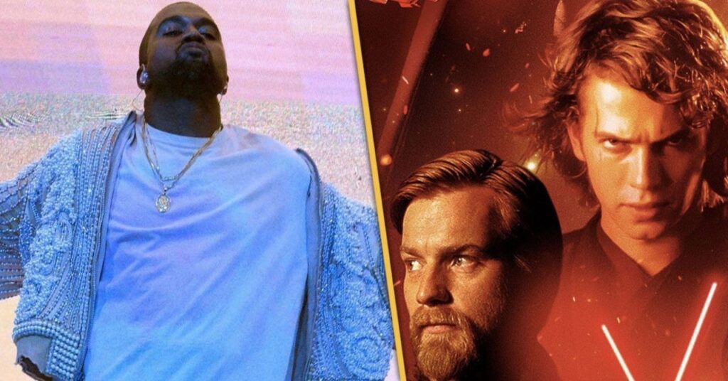 En el clip de 36 segundos, el video muestra la pelea entre Anakin y Obi-Wan de Star Wars: Revenge of the Sith, y sobre esa escena West rapea “aunque sé que piensas que Obi-Wan se está cansando ahora, no saltes Anakin Tengo el terreno más alto “.