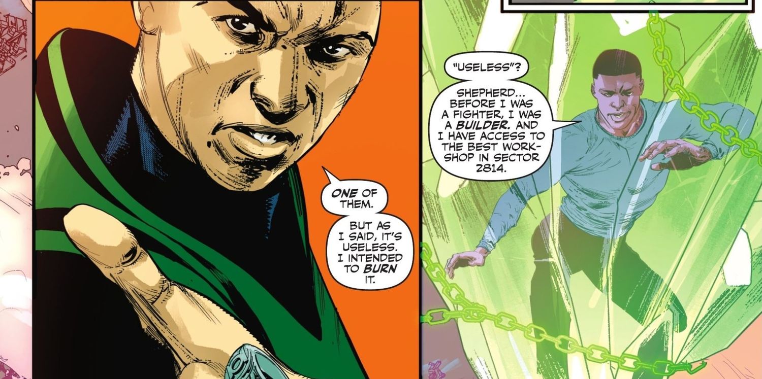- A pesar de los riesgos, los años de experiencia militar de Green Lantern lo hacen bien equipado para usar la mente colmena de Radiant Dead contra ellos.