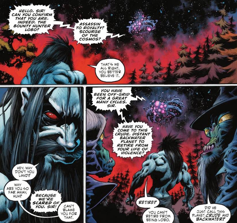 Al encontrarse con Lobo, Los extraterrestres se refieren a él como. “Asesino de la realeza” y “Azote del Cosmos”. Es este último apodo el que subraya poderosamente la vasta reputación cósmica de Lobo y su inmensa influencia dentro del Universo DC.