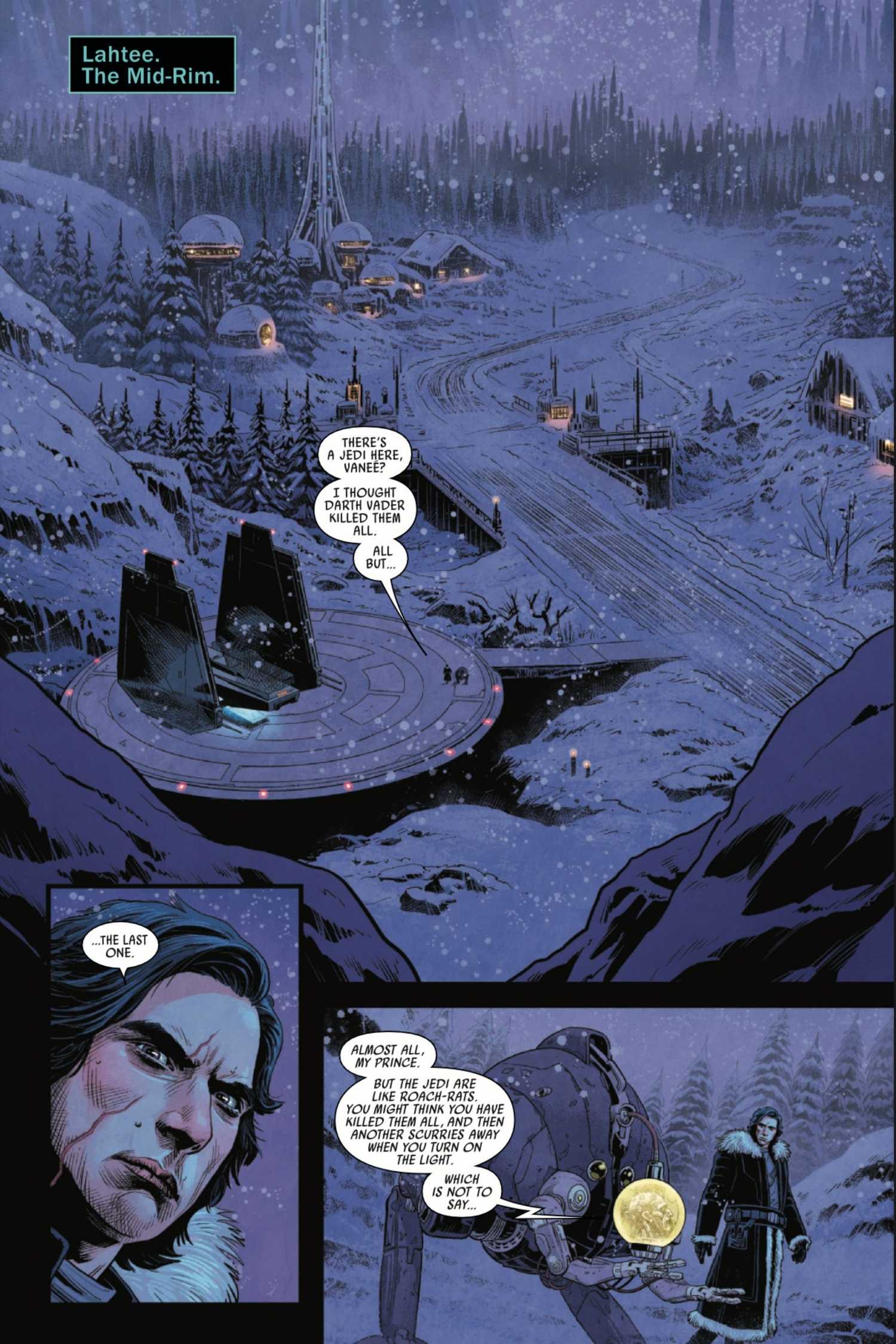 Star Wars: Legacy of Vader #6, escrito por Charles Soule con arte de Luke Ross, actúa como un estudio de personajes para las luchas internas de Kylo Ren. Kylo Ren evita constantemente decir el nombre de Luke Skywalker, en lugar de refiriéndose a él siniestramente como “El último”. Su elección deliberada de palabras es significativa, ya que se hace eco del título de Star Wars: The Last Jedie implica que el título es oficial por el cual Luke era conocido dentro de ciertos círculos.