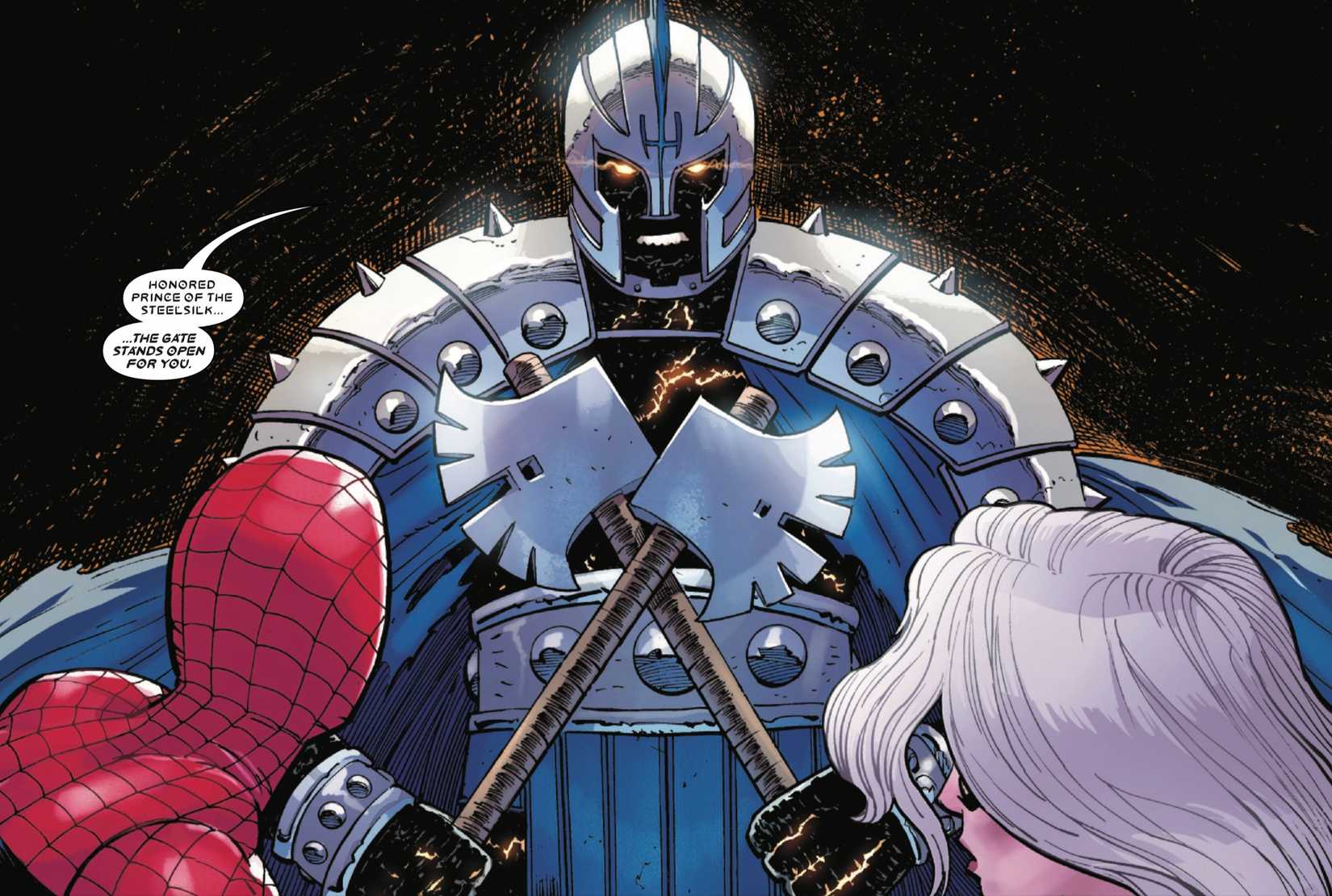 Hellgate llama a Spider-Man el “Honorable Príncipe de la Acero“, Haciendo referencia a sus icónicas correas Eso lo ayuda a girar por la ciudad como un héroe amigable del vecindario. Esta misteriosa amenaza no solo parece respetar las contribuciones de Spidey a la ciencia, sino que el apodo podría insinuar los verdaderos orígenes del villano.