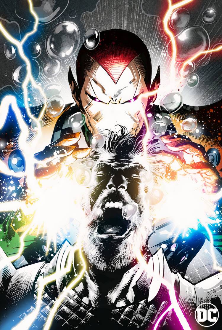 Los fanáticos ya han visto el debut del Último Hijo y del extraoficialmente llamado Amazo-N, pero la introducción de Depth Charge podría ser la más ruda hasta ahora. Él libera un ejército de tiburones en Atlantis y se transforma en una versión colosal de sí mismo. Demostrando sus nuevos poderes. Las impresionantes imágenes de Raynor y Guerrero garantizan que este Amazo dejará una impresión duradera.