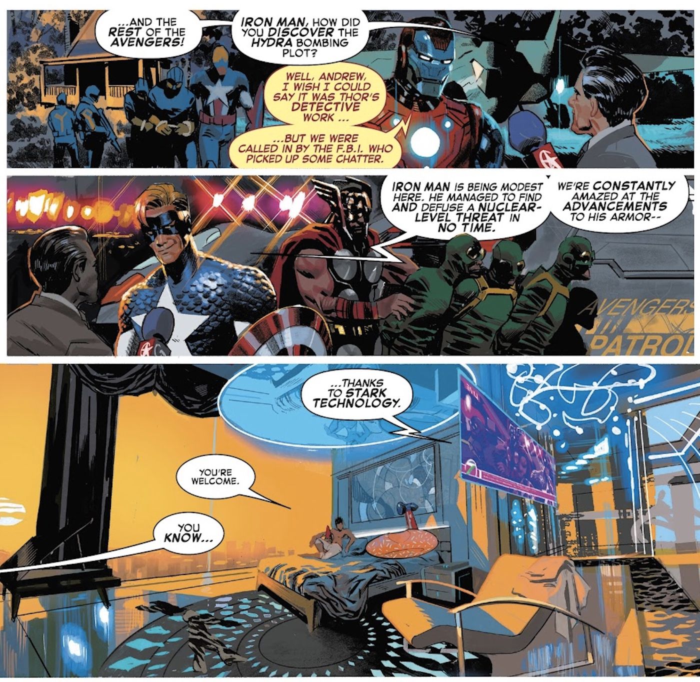 La retirada de Steve Rogers del papel del Capitán América dejó el manto vulnerable a ser asumido por empresarios poco confiables como James Stark. Stark Technology es el cerebro detrás del éxito de los Nuevos Vengadores, ya que diseñó las armas y los trajes de los nuevos Iron Man y el Capitán América. Incluso SHIELD tiene sus propios soldados de la Legión de Hierro para controlar a los criminales y abusar de inocentes con total autonomía. Un Steve cínico y deprimido, sin el suero del Súper Soldado, no puede hacer nada excepto ver a James Stark y SHIELD borrar el buen nombre de los Vengadores.