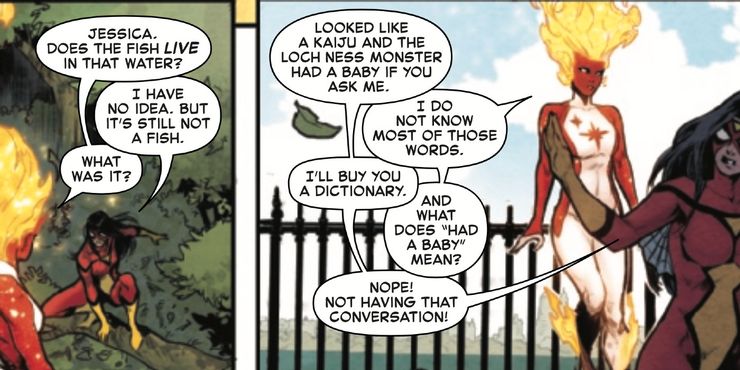 Carol Danvers se ha partido en dos y Binary, la nueva capitana maravillano es solo una renovación del personaje: también es la respuesta de Marvel a una de las heroínas más populares de DC Comics, Estrella de Fuego. Como personajes extraterrestres que construyen un hogar en una Tierra desconocida, ambos personajes son notablemente similares en diseño y temperamento. Sin embargo, esto no quiere decir que Binary sea una copia al carbón perfecta, ya que sus aventuras parecen basarse más en la introspección y la autorreflexión, mientras que Starfire a menudo se encuentra lidiando con relaciones y dinámicas sociales.