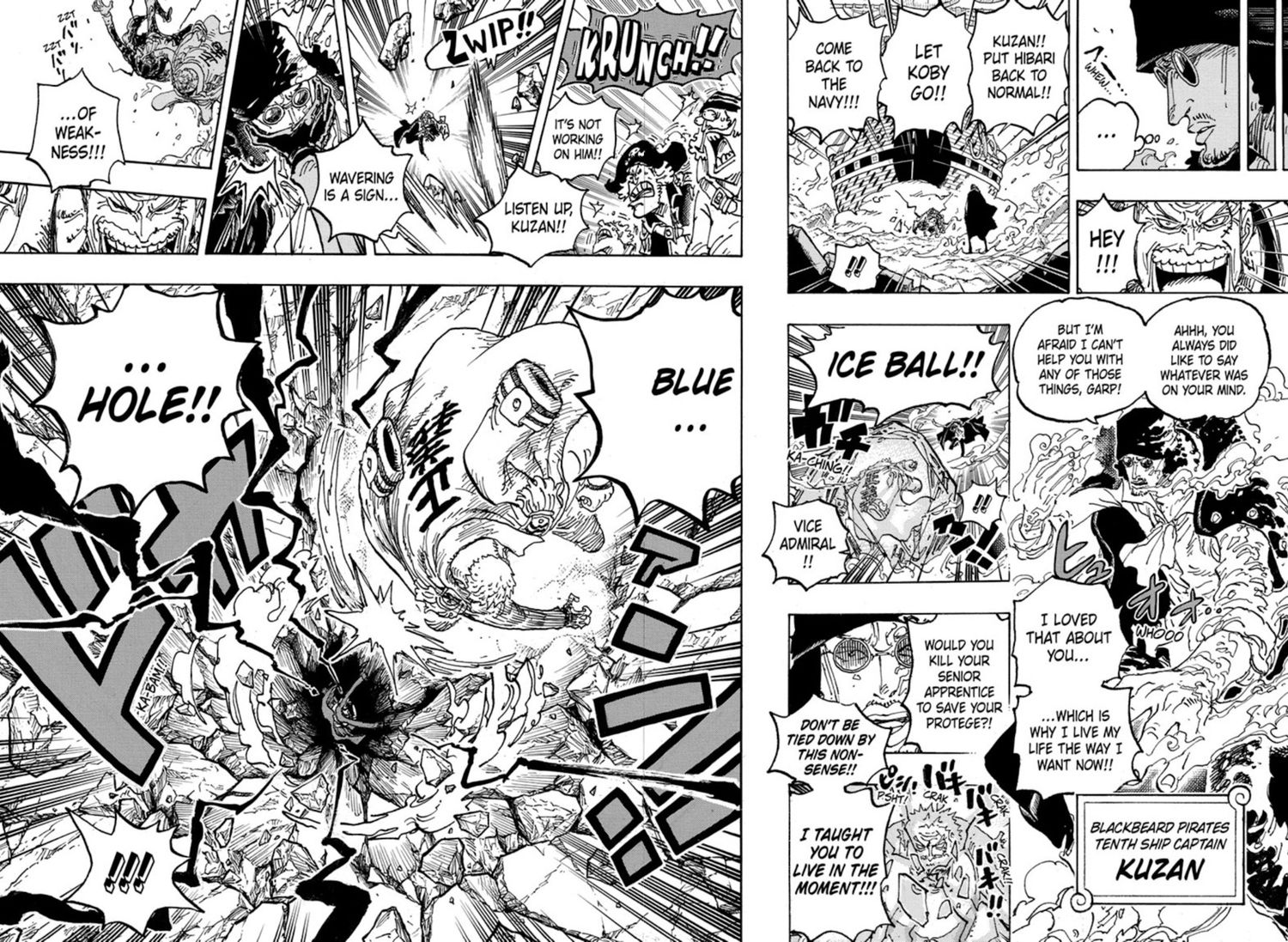 Varias emociones en conflicto impidieron que Garp hiciera todo lo posible durante la Guerra de la Cumbre de Marineford. Aún así, con su último protegido, el Capitán Koby, retenido en una isla llena de piratas notorios que venden esclavos, Garp puede soltarse por completo. También le da al abuelo en duelo una forma completamente legal y aceptable de expresar el dolor que puede compartir por no proteger a Ace. Salvar a Koby es lo correcto y, al mismo tiempo, algo que los marines alentarían abiertamente, que es la situación opuesta al drama de Marineford de Garp que lo tenía atrapado entre la roca de Marine y el puño duro de Luffy.