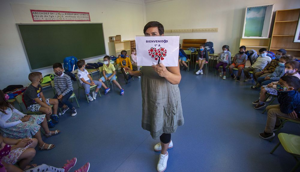 Las mochilas aguardan junto a la puerta a las siete y media de la mañana. Los niños recitan la lección antes siquiera del primer día de clase, tras la interrupción forzosa en marzo por el coronavirus: “Límpiate las manos, desinféctate, mantén la distancia, nada de besos y abrazos”. Ayane y Milan Echavarri Meier, ella de nueve y él de cinco años, revolotean por su casa de Pamplona mientras pulen los últimos detalles antes de poner rumbo a la escuela. Lo harán con sus inseparables mascarillas, la de Ayane de astronautas, a juego con la mochila; la de Milan, con el logo de Superman. Las guardan en fundas de diseño, de Batman y Super Mario respectivamente. Como ellos, miles de alumnos navarros, desde los tres años hasta el bachillerato, se han convertido este viernes en los primeros de España en volver a las aulas.El pequeño, a quien se le han caído a la vez los dos incisivos, suelta una mentirijilla: dice que está sin ganas. Su padre, Javier, apunta que el retorno al colegio supone todo un acontecimiento y que lleva emocionado desde primerísima hora. El pícaro Milan sonríe mientras su hermana, adoptada de origen etíope, relata cómo se organizó la familia para cumplir con sus obligaciones durante el confinamiento. Por suerte, cuentan con un amplio patio, la envidia del bloque, donde el niño aprendió a montar en bicicleta y la chica siguió desarrollando sus habilidades futbolísticas. “Es buenísima”, confía su padre. Pero ella no quiere ser como Verónica Boquete o Megan Rapinoe, sino viajar al espacio. Además, le encanta cantar y bailar. Aun así, aprovechó para entrenar a su hermano, que sueña con ser portero del Osasuna.Este verano no han ido a la playa, sino a ver a la familia de su madre, la alemana Ronja Meier. Esta destaca, risueña, que “en Alemania viven confinados” y que allí el roce social tan mediterráneo no abunda. El reloj marca las ocho y media cuando toca ir al coche y llevarlos al colegio alemán Paderborn, un centro público que ha apostado por este idioma para canalizar la educación. Papá y mamá suspiran con cierto alivio. Todos querían que llegara este día. Salvo el Señor Martínez, un mimoso gato gris y blanco que ha recibido más cariño que nunca durante la cuarentena.Reencuentros a distanciaSon casi las nueve y la hilera de cada clase de primaria parece una alineación de fútbol dispuesta sobre el patio. Suena el himno del cole: el alboroto de unos chavales que se reencuentran con amistades y docentes se combina con las despedidas de los padres y madres, que se quedan fuera. El profesorado pasa revista para que accedan por turnos al centro. La consigna está clara: que no se mezclen. El enérgico Milan recibe el cariño de su profesora, Sandra Domínguez: “Hola, Milan, ¡bienvenido al cole!”. Otros de sus pupilos de primero de primaria traen cara de sueño. Domínguez asume que habrá varias actitudes: unos más revueltos y otros más tímidos en la vuelta a las aulas.La responsable de cuarto de primaria, Andrea Schöfl, se fascina al ver a Ayane: “¡Hala, cuánto has crecido!”. Y vaya alegrón muestra la niña, cuyos ojos brillan detrás de sus gafas. Enseguida enfilan hacia clase. Ya ha habido un contratiempo: un niño ha perdido el bocadillo. Se llama Oier, de 3ºC, según el envoltorio del almuerzo.La profesora de Milan inicia el curso con un juego para sus 21 pupilos. Consiste en escribir en la pizarra los deseos de cara a estos meses tan imprevisibles. Ella lo tiene claro: “¡Quiero veros todos los días!”. Un niño corrige: “Menos sábado y domingo”. Queda claro que este no tenía ganas de volver. A continuación, una retahíla de aspiraciones. “¡Aprender cosas!”. “¡Jugar con los amigos!”. Milan opta por “¡estar juntos!”. La maestra vigila que nadie se despoje de la mascarilla: “¿Somos ninjas o no somos ninjas? ¡A taparse la nariz!”.La dinámica de la clase de Ayane evidencia que los 24 chavales, entre la labor familiar y las noticias, saben los pormenores de la pandemia. Schöfl les muestra una diapositiva sobre cómo cuidarse de la covid-19 y se lleva varios comentarios de los más sabihondos: “El virus no es así, tiene otra forma”. La siguiente tarea es personalizar una mascarilla de papel. Ayane la colorea, cómo no, con el emblema de Batman con unos lapiceros que extrae de un estuche también engalanado con el héroe de Gotham. Águeda, profesora de apoyo, se enorgullece de una clase integradora a la que ve con buenos mimbres y voluntad.Un elefante bebé en el recreo y para casaLa táctica que ha seguido el claustro sobre la distancia social es pedirles a los menores que mantengan entre unos y otros el espacio equivalente a “un elefante bebé”. Así ubican mejor, más que con “un metro y medio o dos metros”. Se han repartido las zonas exteriores del Paderborn para que no se junten con otros cursos. Tanto Schölf como Javier Echavarri advierten de que este colegio público se está quedando pequeño y de que aún no se ha cumplido la promesa de unas nuevas instalaciones.Hasta entonces, a seguir corriendo y trepando por los muros. Ayane baila e intenta encaramarse a una ventana. Son las 11. Sus colegas se mueven como alma que lleva el diablo. Algunos de los de tercero de infantil, del siguiente turno, ya no portan mascarilla. No es obligatorio en sus aulas y los profesores entienden que deben vigilar cuando coincidan con más niños, pero flexibilizar durante el recreo.Javier y Ronja acuden puntuales a la una para recoger a los niños tras esta primera toma de contacto. Por fin han tenido una mañana plácida.― ¿Los habéis echado de menos?― ¡No!, bromea su madre.El abrazo en el que se funden mayores y pequeños cuando estos salen escopetados del Paderborn revela que ambas partes exageran cuando dicen que necesitaban separarse un poco.Siga EL PAÍS EDUCACIÓN en Twitter o FacebookApúntese a la Newsletter de Educación de EL PAÍS