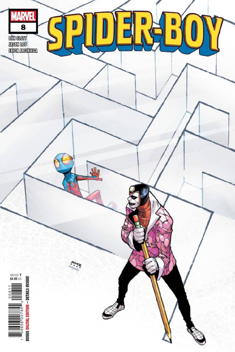 chico araña #8 – Escrito por Dan Slott; Arte de Jason Loo, Erick Arciniega y Joe Caramagna de VC