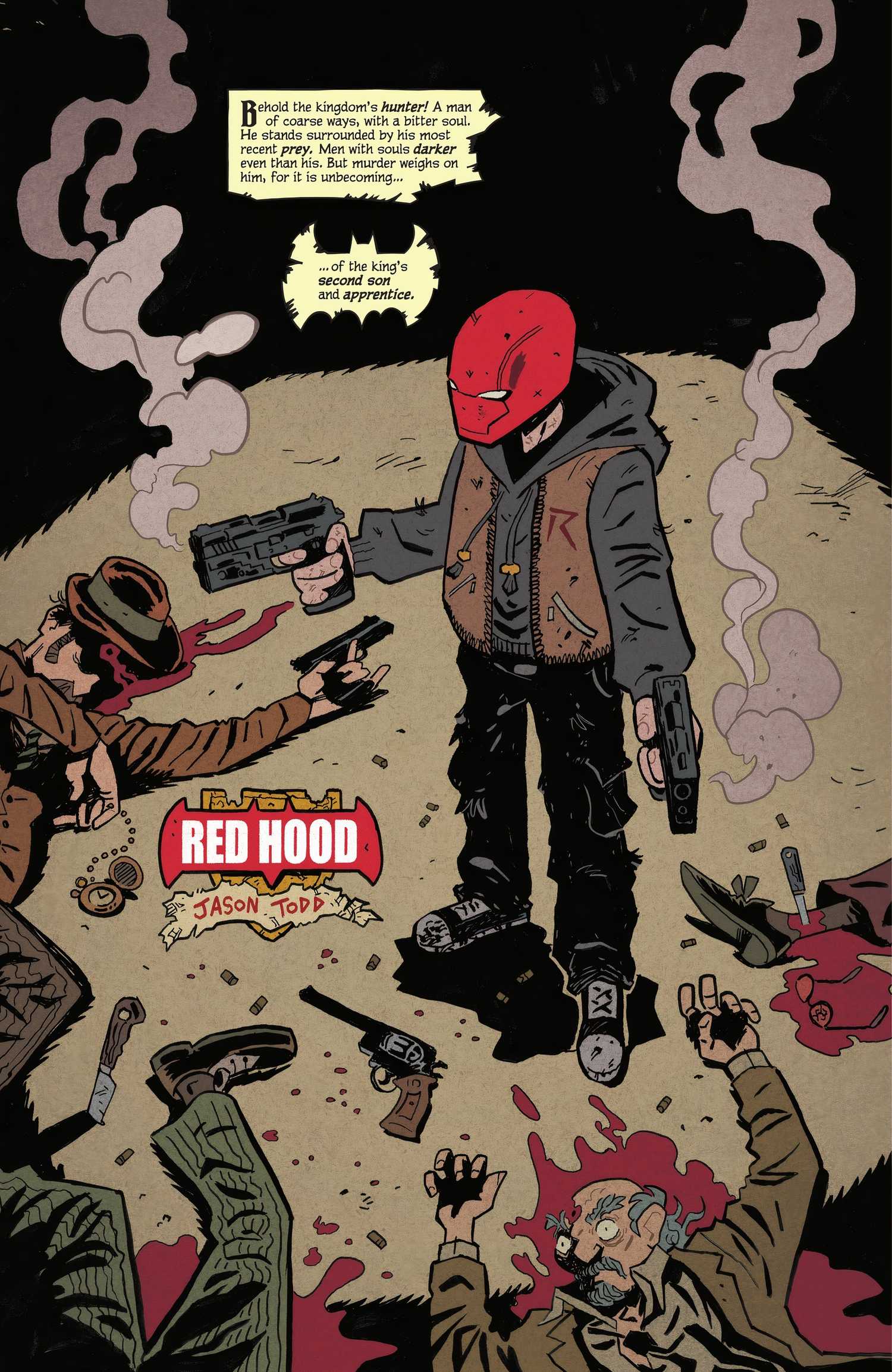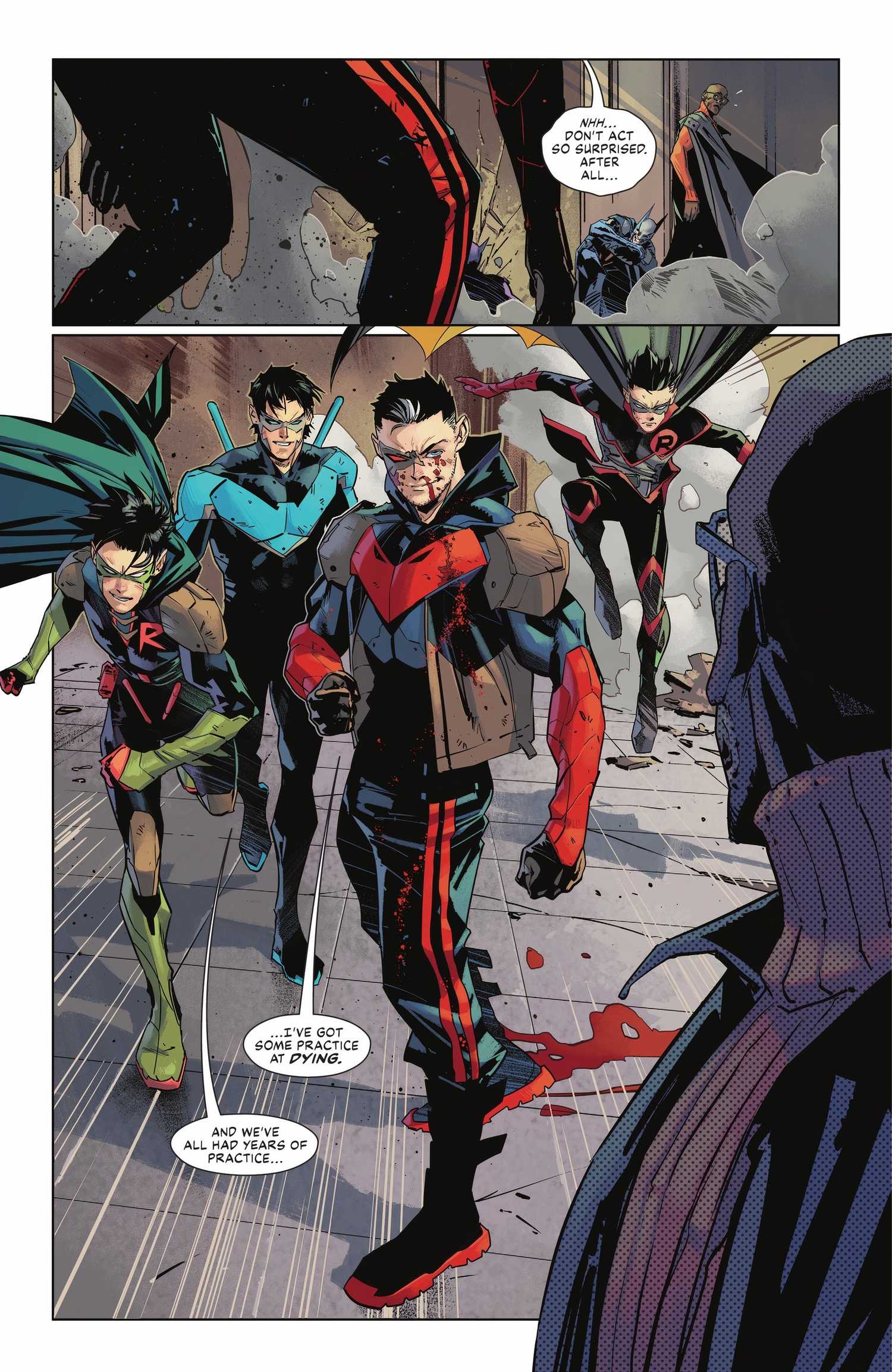 El número 2 cambia el enfoque a Red Hood, marcando su debut en la serie mientras se alía con Robin contra los demonios. Este debut también presenta un nuevo diseño para Jason.divergiendo de la estética convencional de superhéroe que prevalece en la comunidad de héroes del universo DC y adoptando un diseño más alineado con su típico personaje de antihéroe.