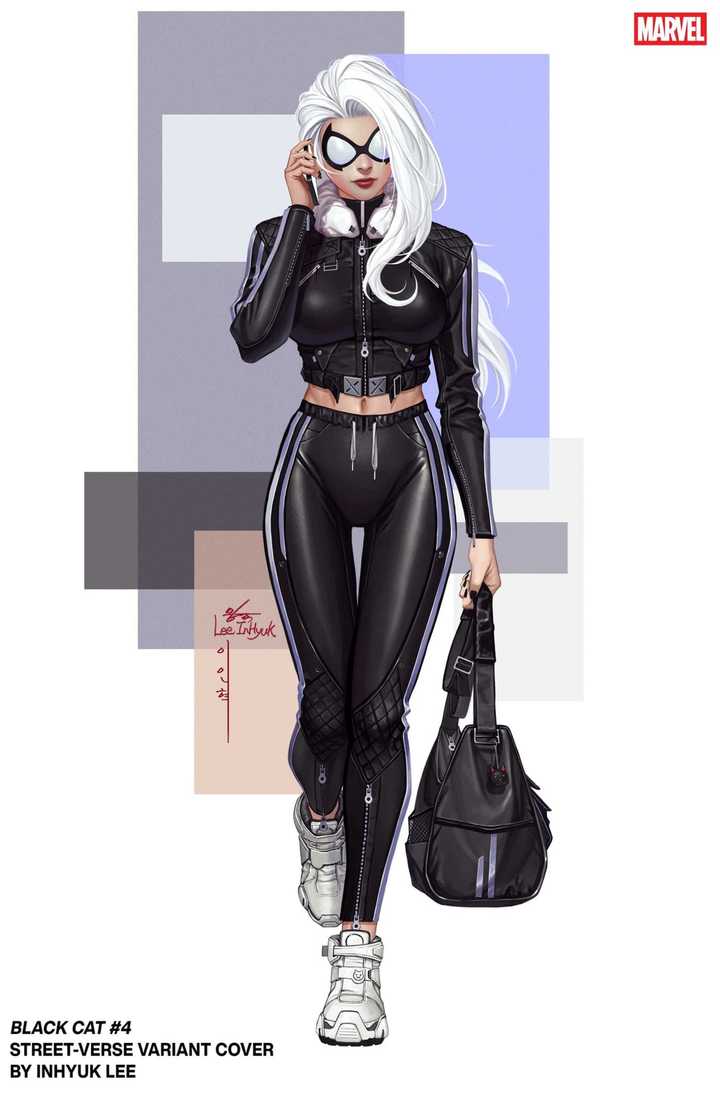 En una cubierta variante recientemente revelada para CAT NEGRO #4Black Cat muestra un disfraz de “verso” diseñado por Inhyuk Lee. En el pasado, el creador le ha dado a varios personajes de Marvel sus propios rediseños de techwear. Ahora, los fanáticos están obteniendo una ola completa de nuevos looks, incluidos otras heroínas Marvel Elektra, Psylocke, Magik, She-Hulk y Storm (vea a esos héroes más abajo en este artículo).