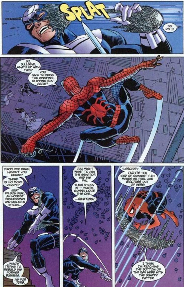 - Con su nuevo traje de alta tecnología, Bullseye plantea un gran desafío para esta versión más antigua y menos experimentada de Spider-Man, que debe demostrar que es el Spider-Man definitivo para este nuevo universo.