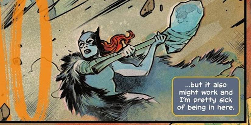 La mayoría de los miembros de la Bat-Familia tienen un arma distintiva o un objeto de elección que llevan a cada batalla. Batman tiene sus Batarangs; Nightwing tiene sus palos de esgrima gemelos; Robin de Tim Drake tiene su bastón bo; Red Hood tiene sus pistolas; y la lista continúa. Pero Barbara Gordon nunca tuvo un arma así para llamarla suya. Sin embargo, un hacha podría ser el arma perfecta para ella, incluso cuando salga de la era prehistórica. No necesita ser un hacha de piedra grande como se muestra en este número, pero Bati-chica Manejar un hacha de algún tipo la ayudaría a diferenciarse de los otros héroes de Gotham.