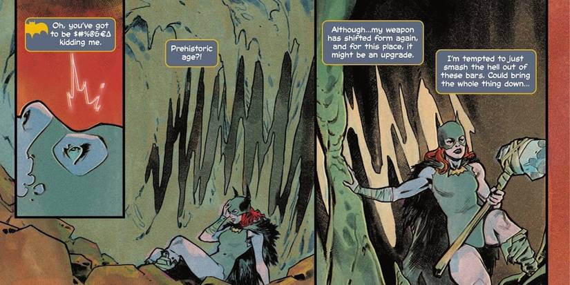 Lo único que le falta a Batgirl, aparentemente, es una aparición de mujer de las cavernas, que debuta en Aves de presa #11 de Kelly Thompson, Robbi Rodriguez, Javier Pina y Gavin Guidry. Cuando la última aventura de los Pájaros los lanza a la era prehistórica mientras saltan de una dimensión de bolsillo a otra, esta dimensión le otorga a Batgirl un nuevo vestuario acorde a la era, equipado con un hacha de la Edad de Piedra a juego.