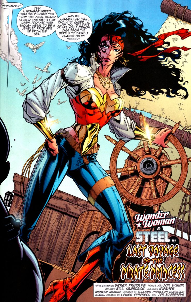 Parece que de la mujer maravilla El liderazgo natural y el talento para lo dramático la convierten en la heroína perfecta para reinventar como pirata, habiendo aparecido como tal en al menos dos historias. Un doppelganger multiversal de La princesa de Themyscira ha aparecido recientemente en las páginas de Liga de la justicia encarnada, reinventando a Wonder Woman como la Capitana Wonder, líder de una tripulación de piratas amazonas. Pero el disfraz del Capitán Wonder no abarca la vida de un bucanero tanto como lo hizo una anterior Diana marinera.
