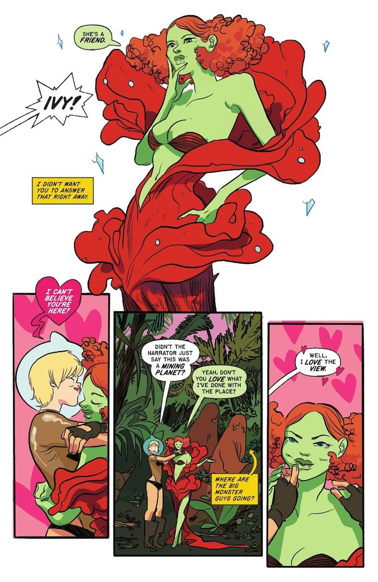 - La historia “Quin-Zel: Cosmic Corsair” presenta a Harley e Ivy en una aventura de ciencia ficción en un planeta minero, mostrando las habilidades botánicas de Ivy.
