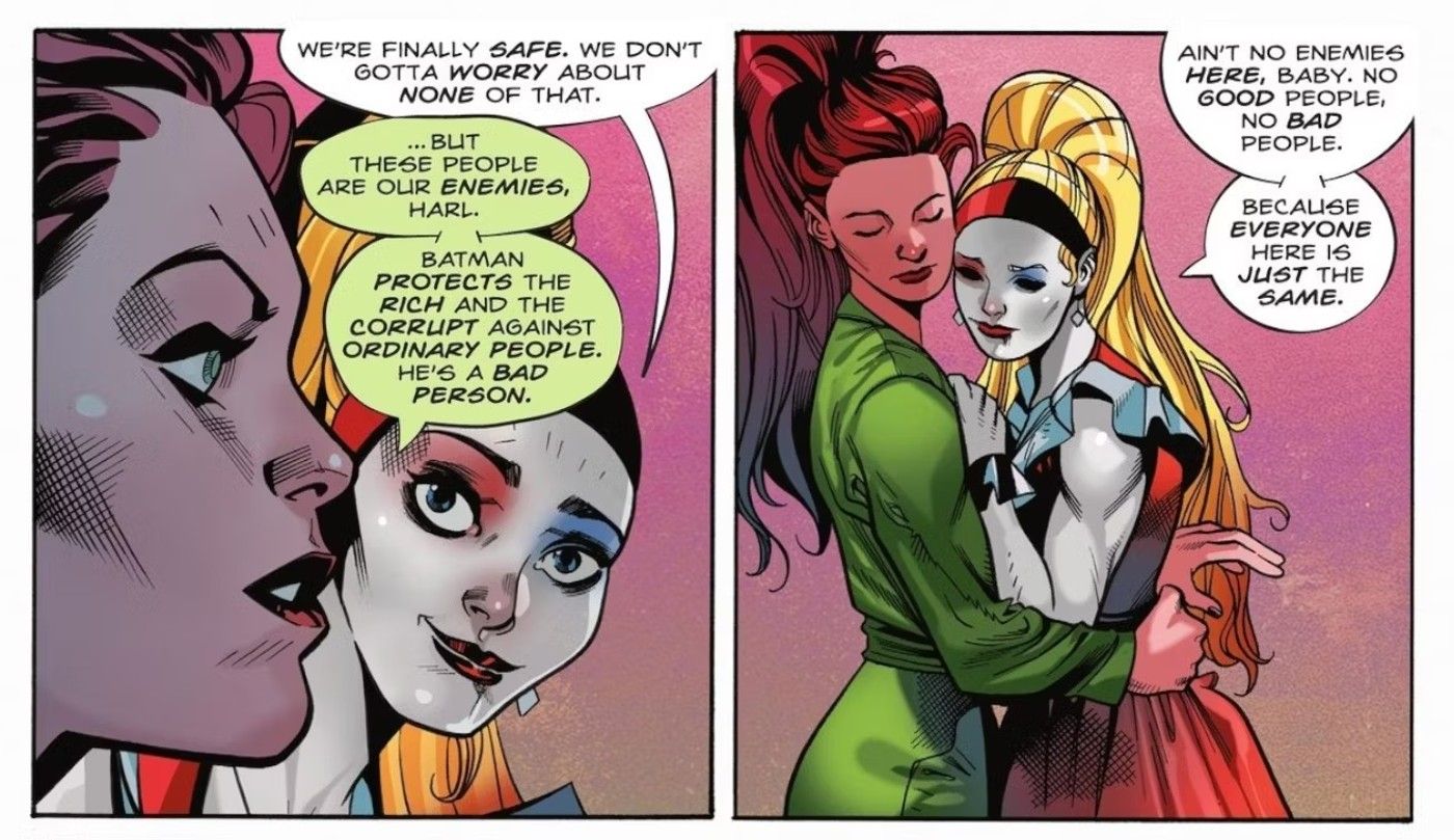 La reacción de Poison Ivy ante su nuevo vecino puede sorprender a los fanáticos: ella es asustado de batman A diferencia de la mayoría de los villanos de Batman, Poison Ivy se ve a sí misma como la heroína de su historia. Muchos de los villanos de Batman saben, hasta cierto punto, que son monstruos. Pero, teniendo en cuenta que su objetivo principal es salvar la naturaleza y el planeta en general, Poison Ivy cree honestamente que es una heroína que hace lo que es necesario, y cualquiera que intente detenerla es un villano, incluido Batman, a quien ella llama “una mala persona.Que Batman esté vestido como un padre suburbano estereotípico, con una Selina Kyle embarazada a cuestas, no es una coincidencia, a pesar de lo hilarante que es la imagen.