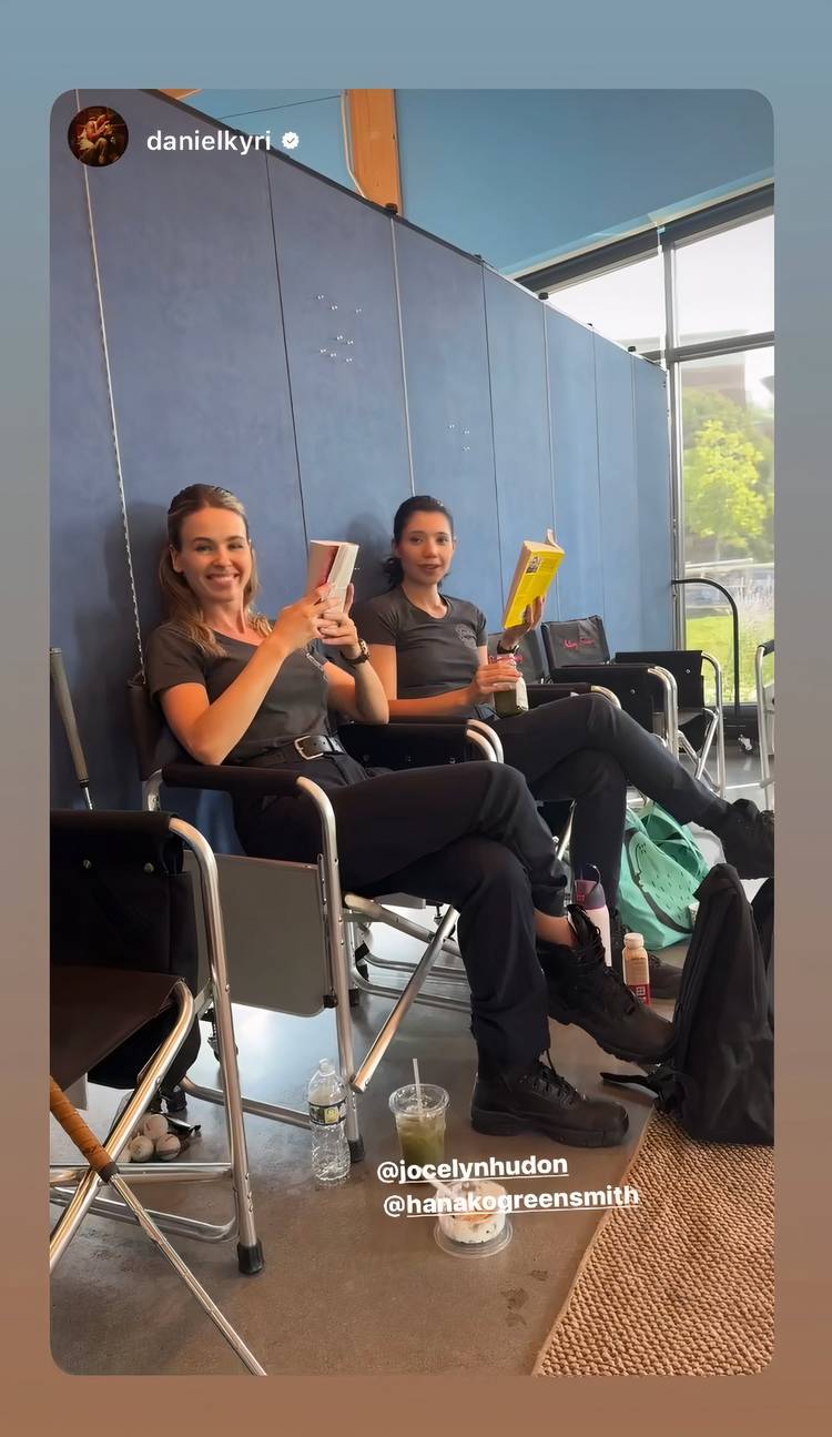 En la publicación, Kyri muestra Hanako Greensmith y Jocelyn Hudon leyendo en el set de la temporada 13La pareja encabezará el renovado Ambo 61, que fue remodelado inmediatamente después de la salida de Kara Killmer como Sylvie Brett como paramédica a cargo del Firehouse 51.