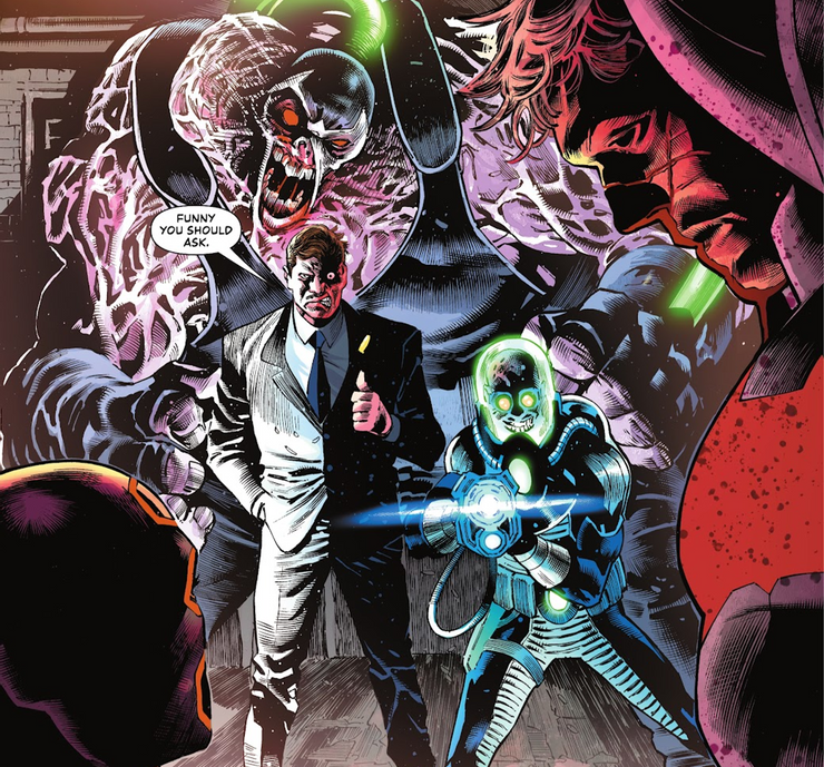 Ya sea que la cabeza de Man-bat coopere con Bloom y Powers o no, el hecho es que representa a otro miembro de Task Force Z que ahora está fuera del control de Red Hood. Después de una pelea masiva entre el Task Force Z de Red Hood y la versión del equipo de Amanda Waller, los únicos miembros “sobrevivientes” del Task Force Z capaces de hacer cualquier cosa son Bane en descomposición, Two-Face y un Mr. Freeze recién zombificado. Deadshot ha regresado recientemente a la “vida” y aunque Sundowner y Arkham Knight pueden no estar muertos, se desconocen sus condiciones después de que cayeron en la batalla. Dado que Two-Face es el líder de Task Force Z detrás de escena, parece poco probable que acepte fácilmente las órdenes de Red Hood, y dado que el Sr. Freeze es nuevo en el equipo (y una especie de némesis no oficial de Red Hood) no está seguro de qué tan bien operará como parte de un equipo. Además, es posible que aún guarde rencor por haber sido asesinado por Task Force Z en un número anterior.