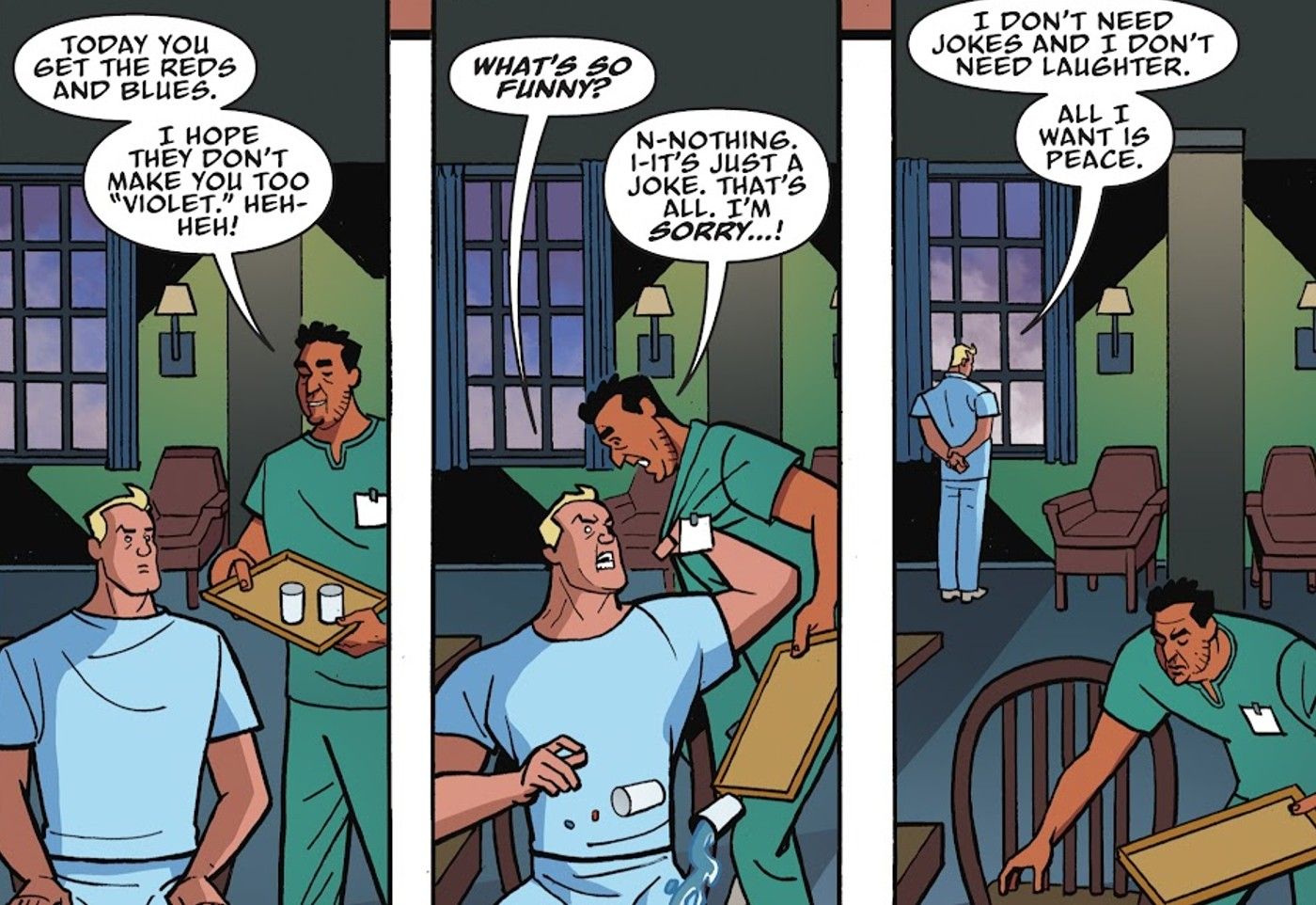 Lo que hace que Finley sea tan trágico es que era un soldado heroico que intentaba servir a su país. Sin embargo, las etapas finales del Proyecto Samson involucraron un procedimiento secreto para tenerlo totalmente bajo control, un proceso que el Guasón saboteó. Si bien el asistente de Hugo, lleno de culpa, ha estado trabajando desde entonces para ayudar a Straightman, y Batman finalmente lo libera del control de Joker y lo trae en busca de ayuda, el arco termina con Finley recibiendo tratamiento pero ahora lleno de venganza. Su tiempo con Joker ha hecho que el ex ‘Straightman’ tenga una reacción violenta a la risa, y parece que ahora está obsesionado con vengarse de lo que le hicieron. Parece que el Capitán Carl Finley es ahora un verdadero villano de Ciudad Gótica, odia el humor y ha jurado vengarse sin importar lo que le cueste.