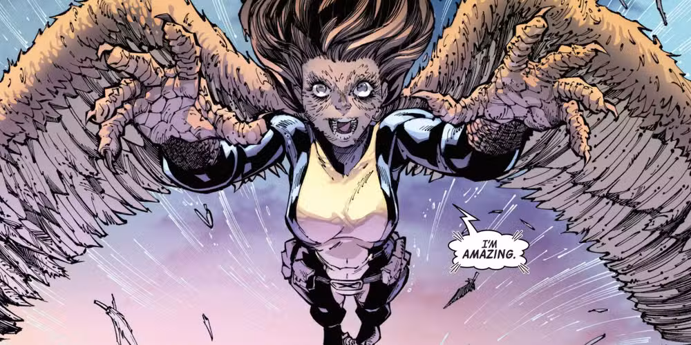 Este momento en X-Men #21 enfatiza lo que hace que las transformaciones de Animalia sean particularmente convincentes, ya que sus poderes mutantes se ven afectados por su estado emocional. La transformación de Jennifer se desencadena por la ira, dibujando paralelos al casco. Sin embargo, los poderes de Jennifer Starkey van un paso más allá y la transforman en un animal diferente basado en la situación.que es más parecido a las habilidades de Darwin.
